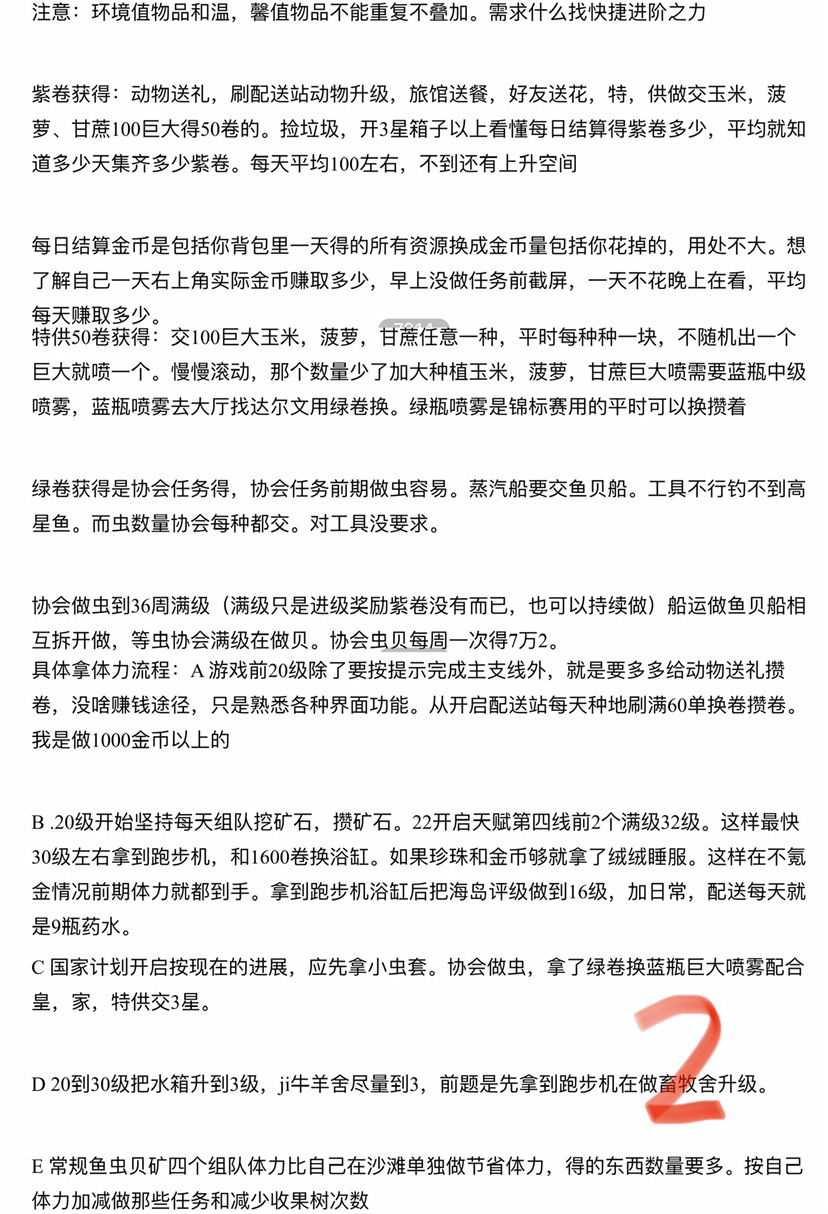 具体拿体力流程:A 游戏前20级除了要按提示完成主支线外,就是要多多给动物送礼攒卷,没啥赚钱途径,