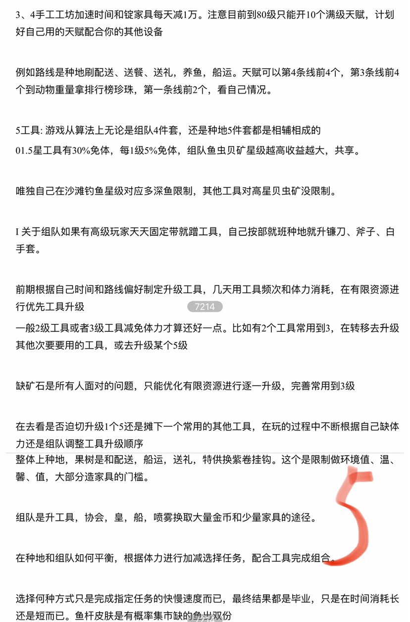 一般2级工具或者3级工具减免体力才算还好一点。比如有2个工具常用到3,在转移去升级其他次要要用的工具,或去升级某个5级