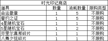 获得五星角色时会同时获得时光印记*10,获得五星常规质点时会同时获得时光印记*2,获得五星套装质点时会同时获得时光印记*5,获得四星角色时同时获得时光印记*2,获得四星套装质点时会同时获得时光印记*1,获得三星套装质点时会同时获得星辰碎屑*15。副产物商店如下: