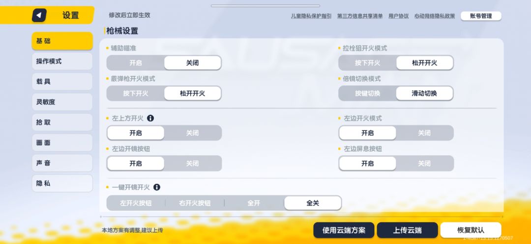 #6.一键开火按钮:建议开启,可以直接替代瞄准按钮,做到瞬间反应,且不于左上方开火冲突