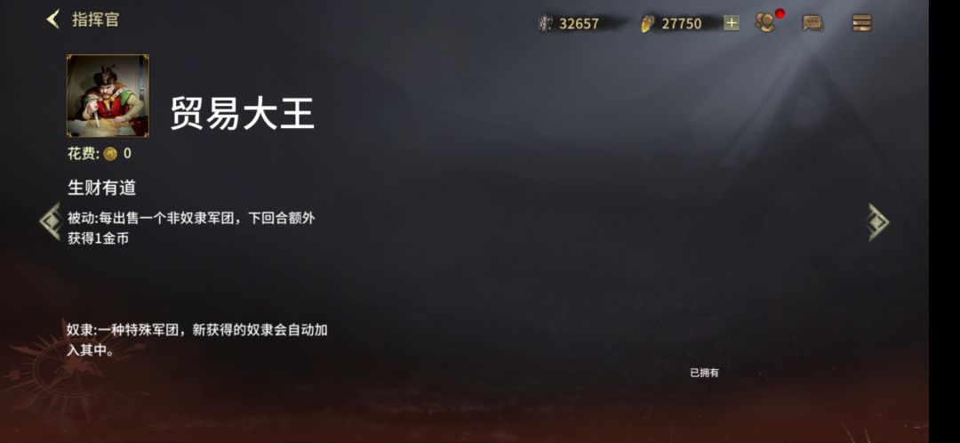 这个指挥官,非常适合玩奔马旭日的小朋友,运气好点还可以给你爆出各种核心卡牌,竞技和征战都可以用。其他的阵营也可以用,麋鹿的换卡量不大,喜欢麋鹿可以不选这个指挥官。每出售三次就可以给你一个军团,有一次,我场上两个渔网,变废为宝,给我来个三连渔网。你有被他爽到过吗?