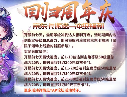 回归周年庆福利活动开启: