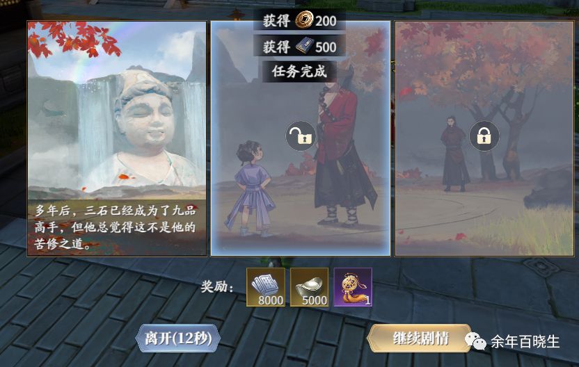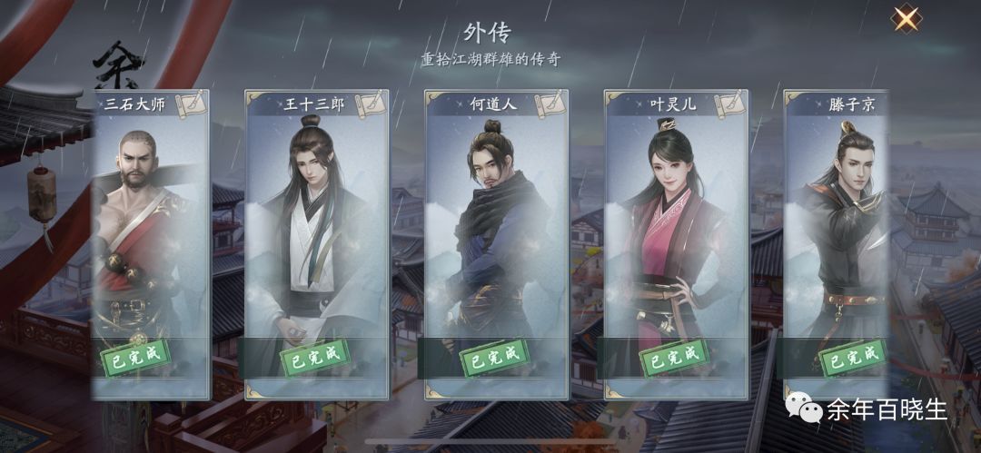 使用余年手札(纪事宝箱奖励可获得)解锁外传的剧情篇章,一共5个人物,每个人物三个篇章。每个篇章有三个小剧情,每个小剧情能获得一定经验+银子+金兰佩。进入剧情跟着任务提示做就能完成,没什么难度。