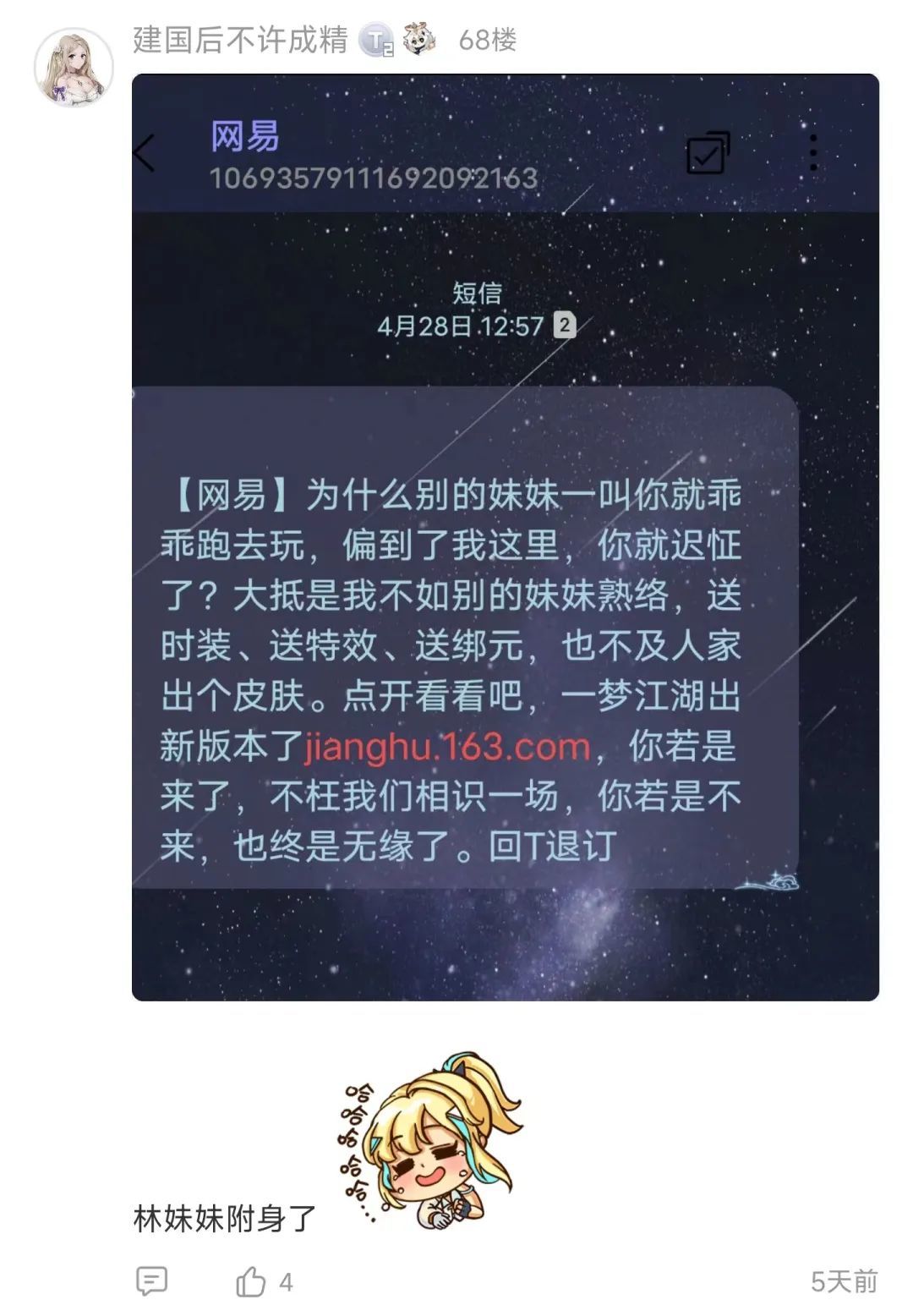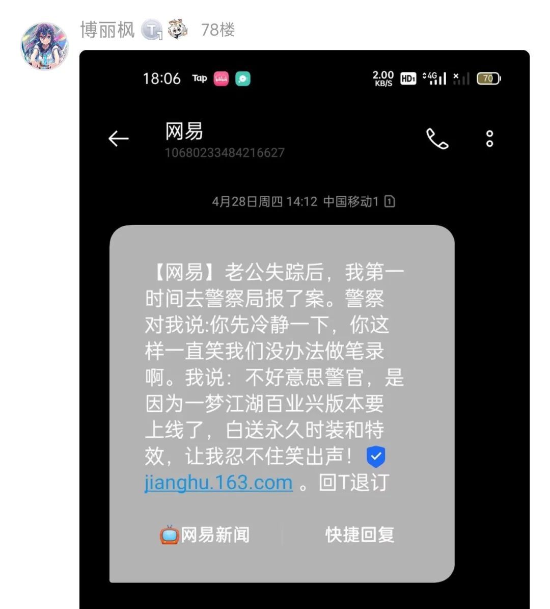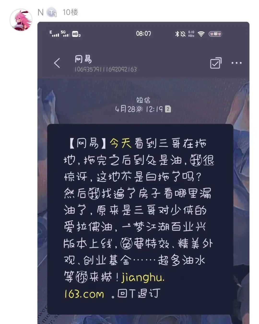 游戏用短信推广这个行为估计大家都挺反感的,但是上周在 TapTap 论坛我发现有不少玩家在晒推广短信的截图,仔细一看,内容实在有点逆天,分享给大家鉴赏一下: