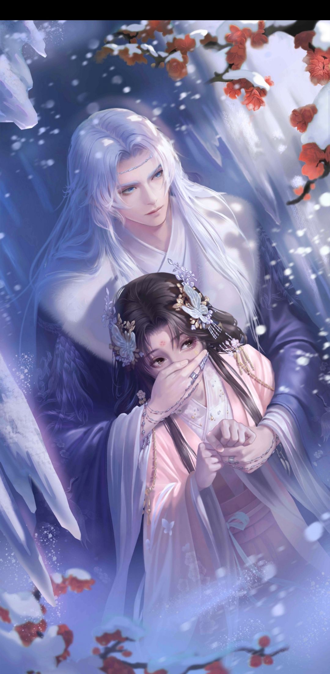 立绘是五位男主中最有特色和新意的,每张卡的颜值也在线。这真的是我目前最喜欢的一个男主了,见证了刚开始触碰他时的冷漠“放开”“去抱思归”,慢慢相处到后来,仙人会开始说“你一靠近,我便能感觉到”,也会和我解释“这具身体不知冷热”。他一直在身后默默看着我,必要时出手相助。
