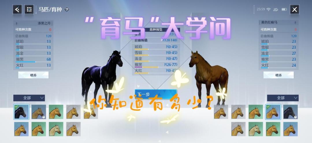 满足以上条件进行育马时即可获得总血统为150的马匹,希望大家欧气满满,早日获得属于自己的高品质马匹。