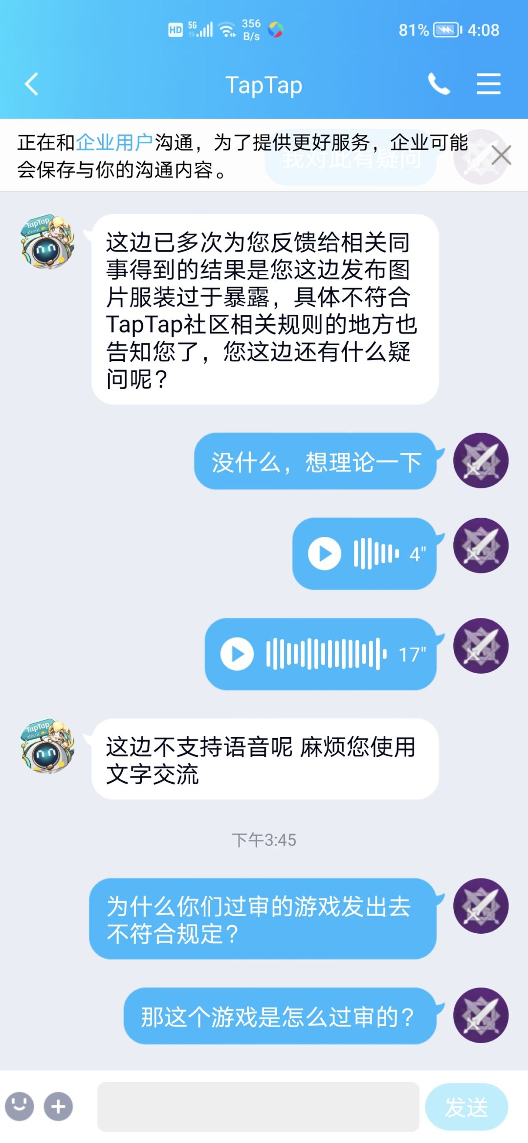 我擦,服了,我在tap上下的游戏,结果图片不没过审,笑死,老双标了。