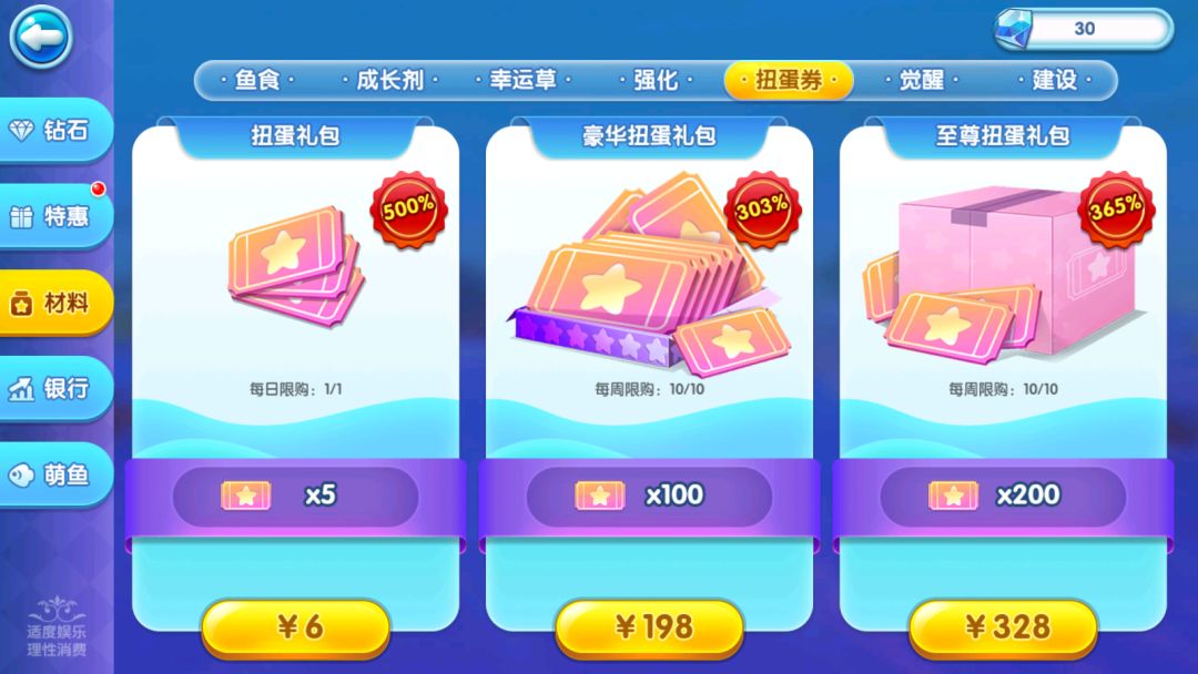 ①优化商城界面②新增材料礼包分类;
