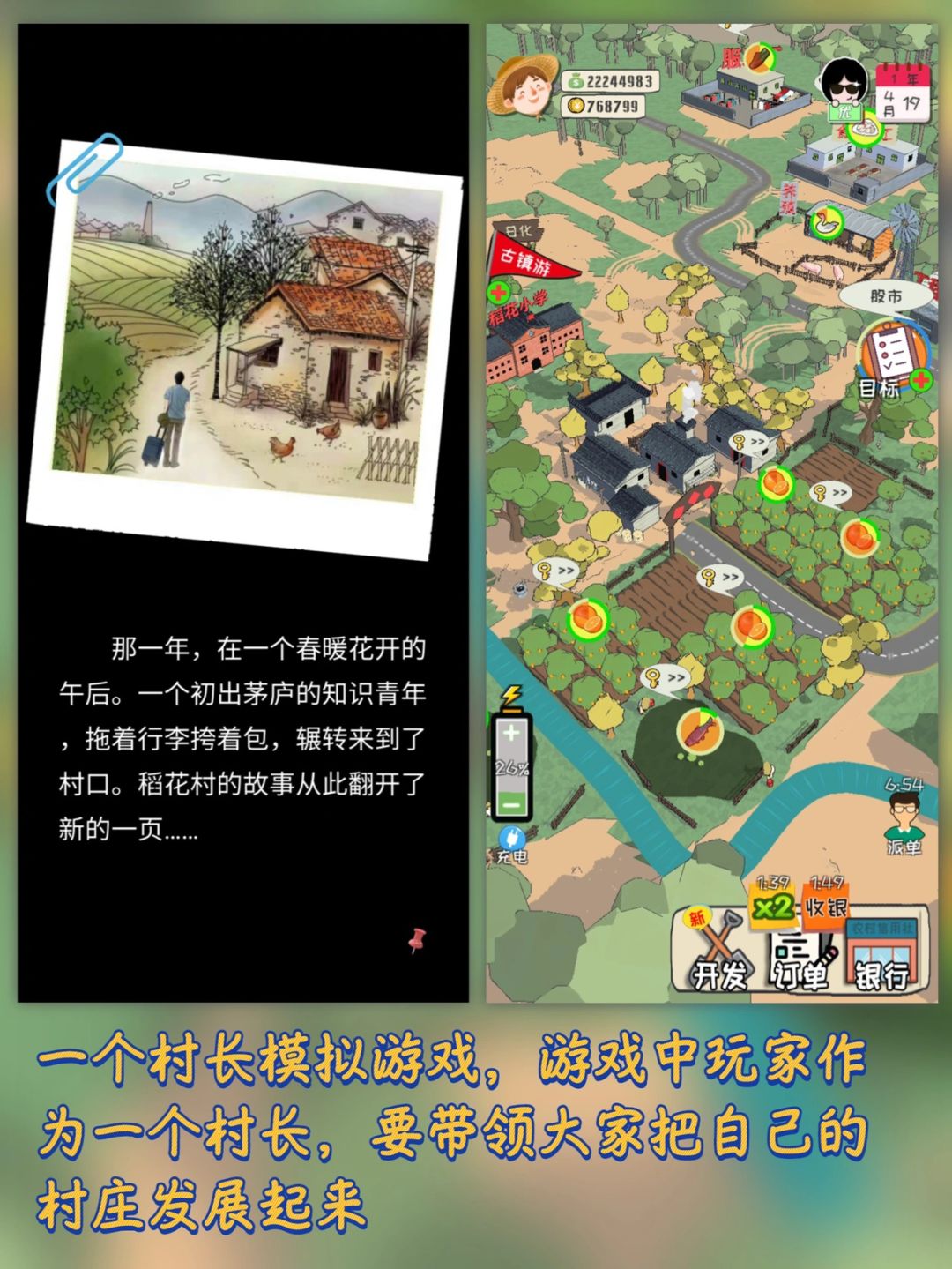 游戏背景是在70、 80年代,一个年轻的村长,带领大家开荒种地,兴修水利,加强研发和教育,在他的带领下,村庄慢慢富裕起来-这是一个村长模拟游戏,游戏画面是手绘风,个人认为很好地还原了那个年代的乡村环境。背景音乐很舒服,建议游戏时打开声音,有一种回归乡村生活的感觉。