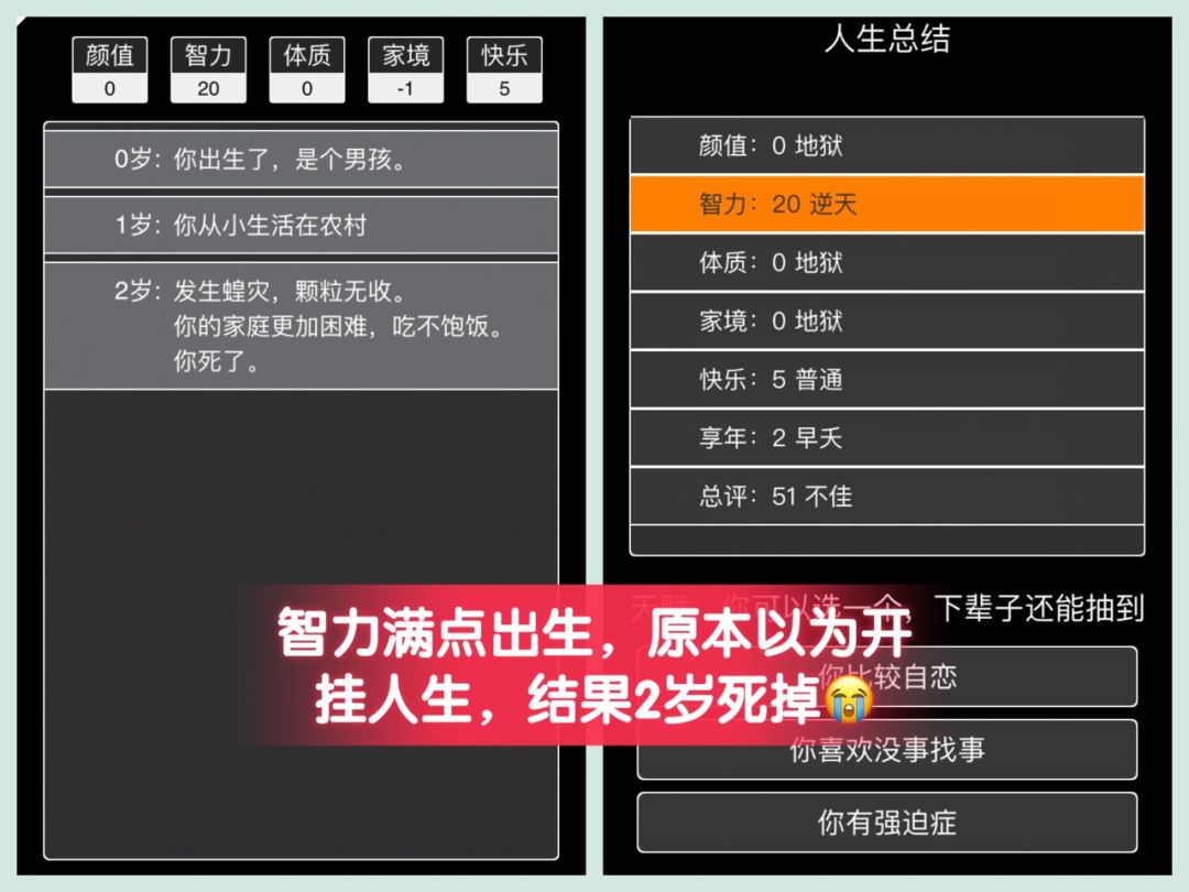这游戏有毒!开始给你10个天赋,你选择3种开启新的人生!