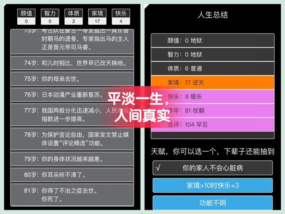 一般设置一个比较好的家境和体质,都能有不错的人生!人间真实‼️智力什么的都是浮云,拼爹才是王道