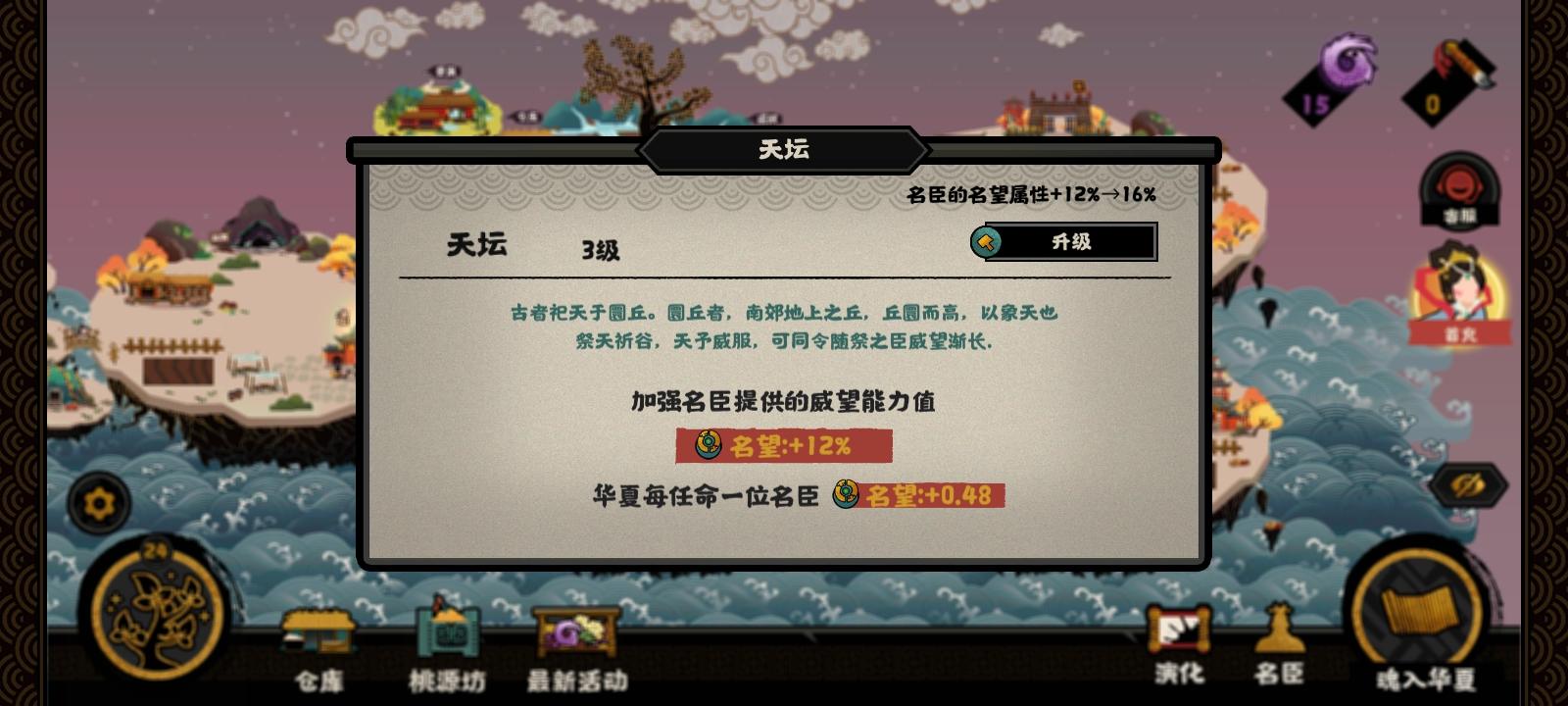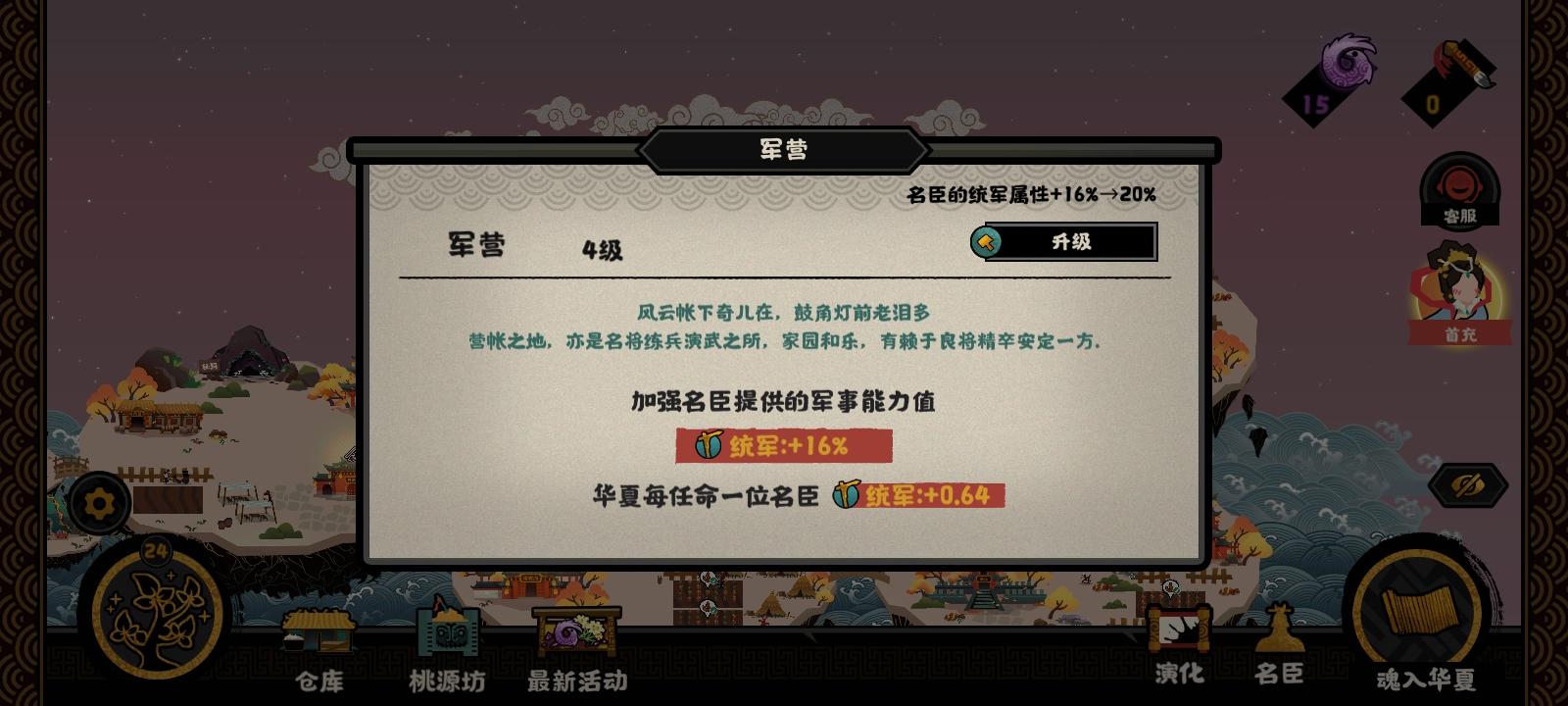 今天看到有人说难度高,我本来想反驳的…但没认真去玩的我肯定没资格说话,所以我就去开了一局,按照新手阵容——一个名臣不带。(建筑加成没法去掉,但开局没名臣好像有建筑也没关系?)