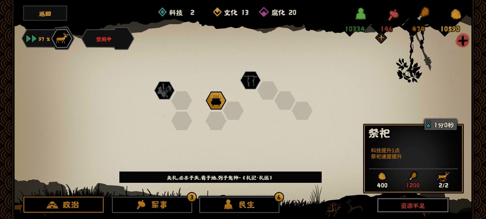 好难啊哈哈哈…在粮食之前点过军事,然后就只能靠缓慢的战争发育了,没粮,再加上人机的快速发展…确实好难