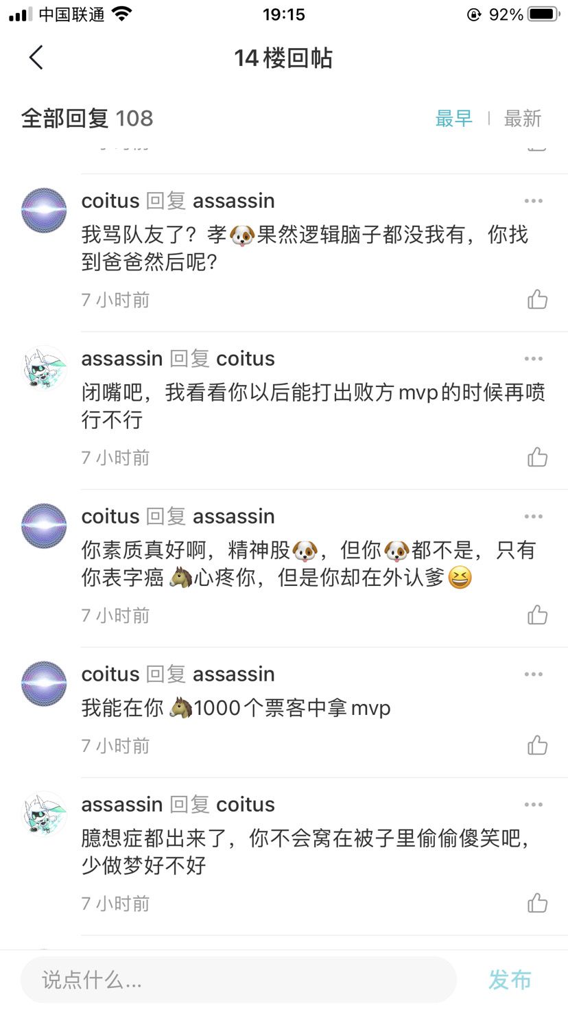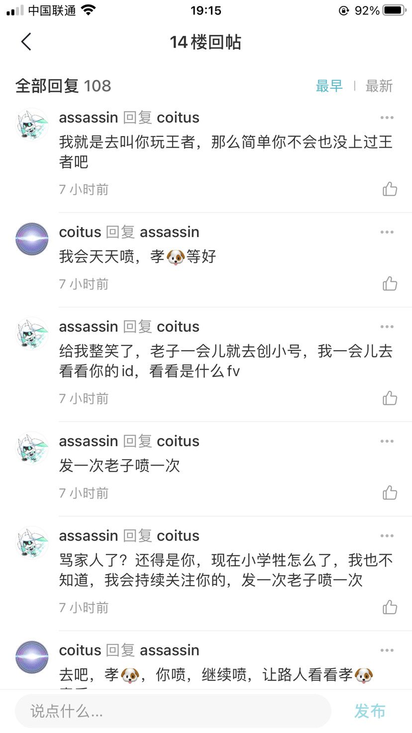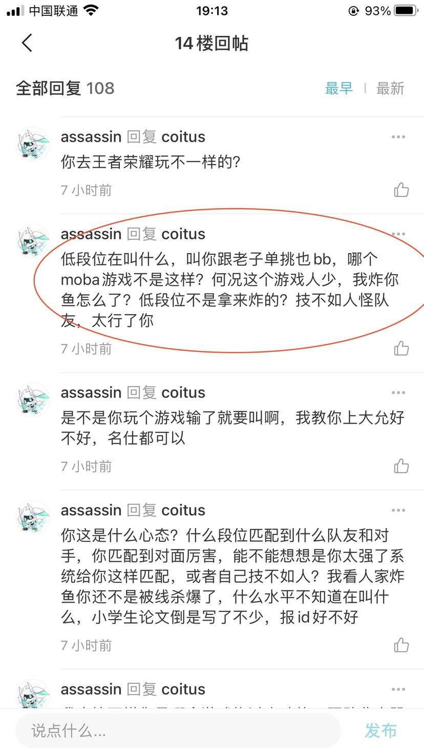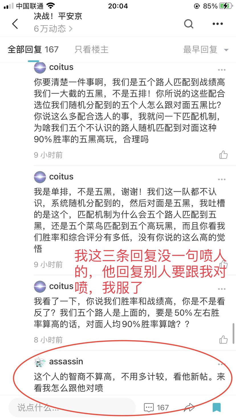 然后翻了一下原帖,我回复别人三句话没一句骂人吧,他还回复别人说来喷我,笑了