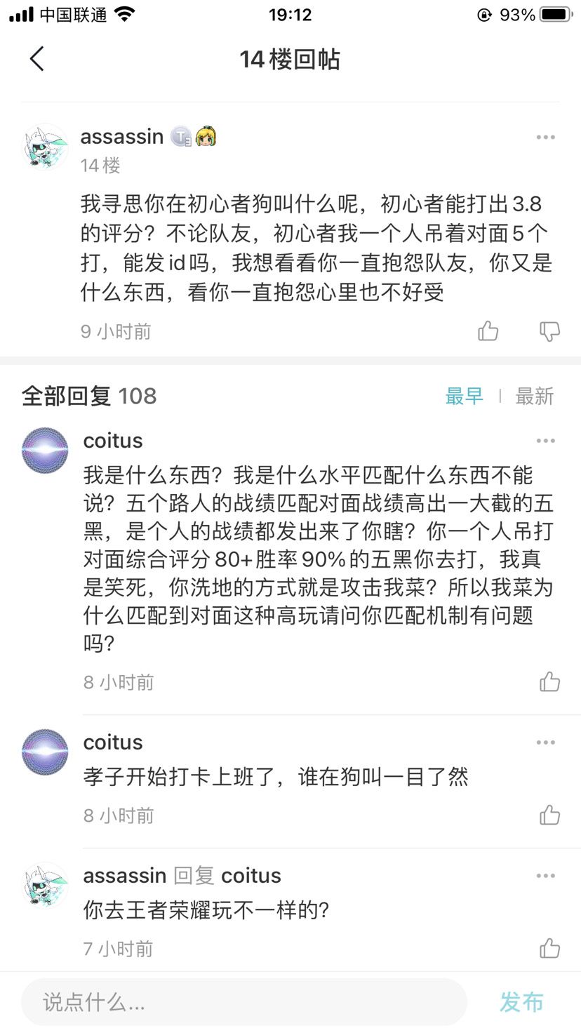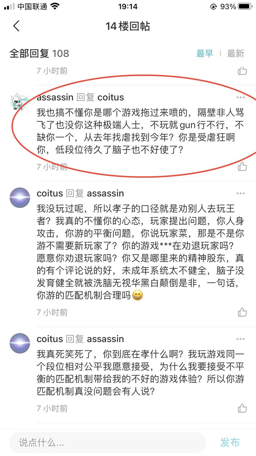 然后我回复他跟他说匹配机制问题,他直接要我gun去玩王者,是不是臆想症觉得说这游戏问题的人都是王者玩家?