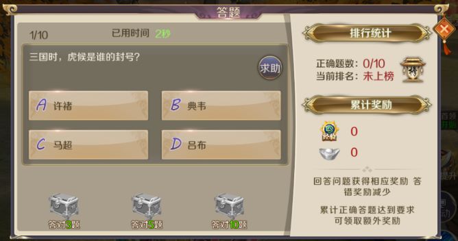 要说对三国的了解,还能考验腹中的墨水程度,游戏里的【智囊问答】一试便知。内含三国万象,既有正史也有传记,当然也不排除在你认真作答时,蹦出一个脑筋急转弯,来一个猝不及防。