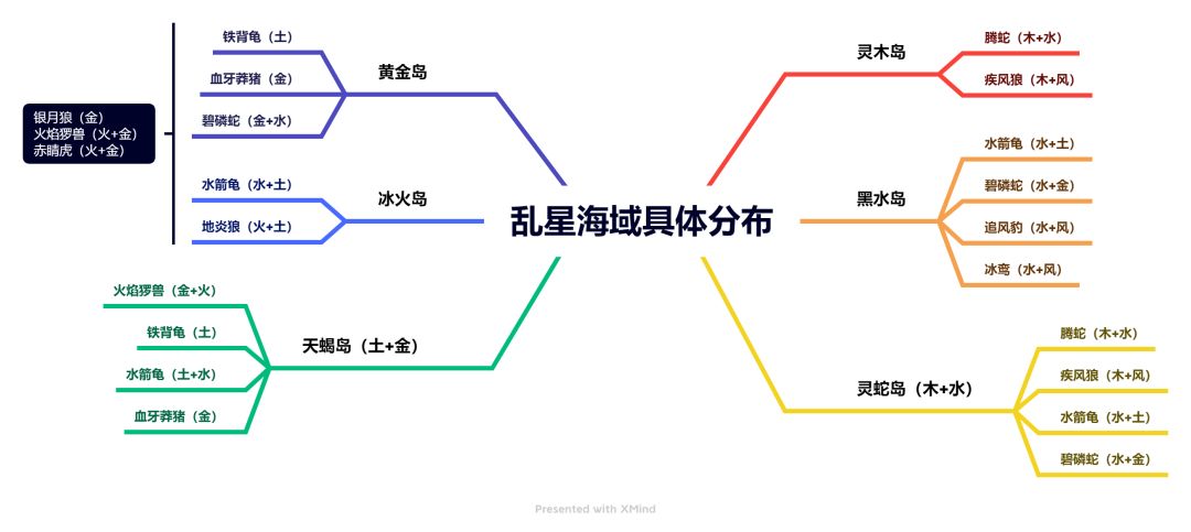 因为乱星海域存在多个岛屿,所以我用思维导图稍微做了一点总结。
