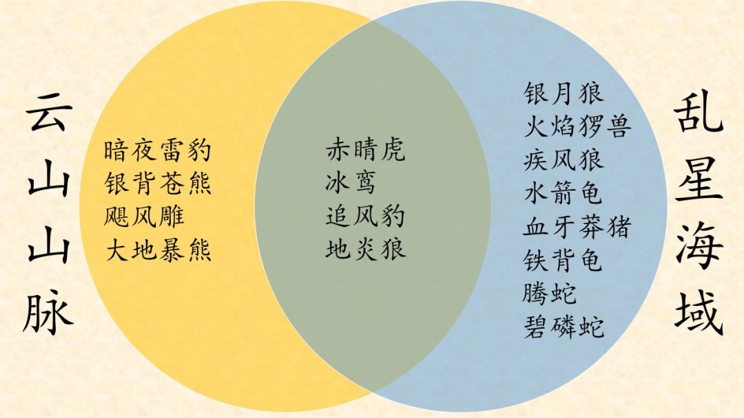 我一直在想一个很好的方法去表现云山山脉和乱星海屿的的宠物分布,今天想到了:韦恩图。