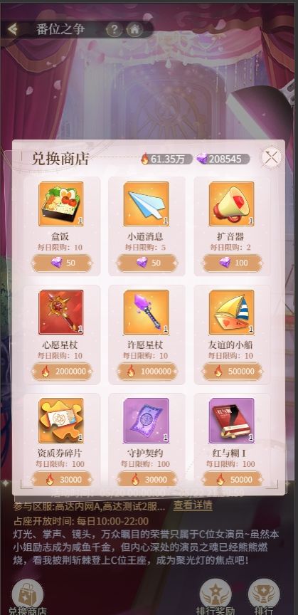 5、每日0点重置道具的兑换次数及所需消耗数量。