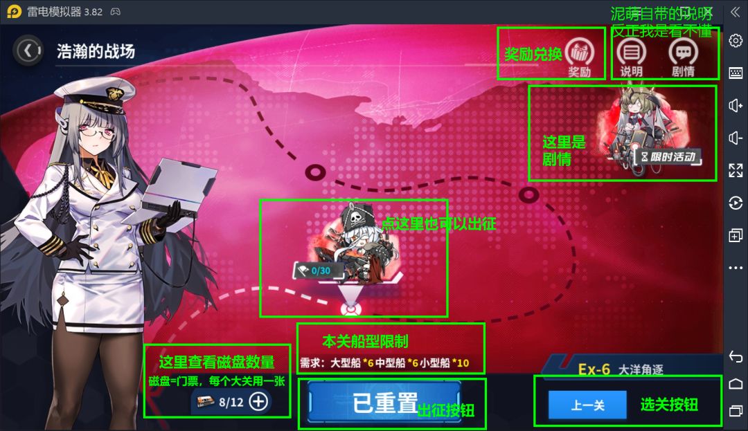 当这个血条被削减到0,同时BOSS点旗舰被击沉时,此图通过,以上这个过程,通常称为斩杀。注意:所有大型活动,如果活动形式是推图,那么必然为带血条的图。