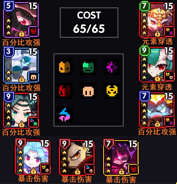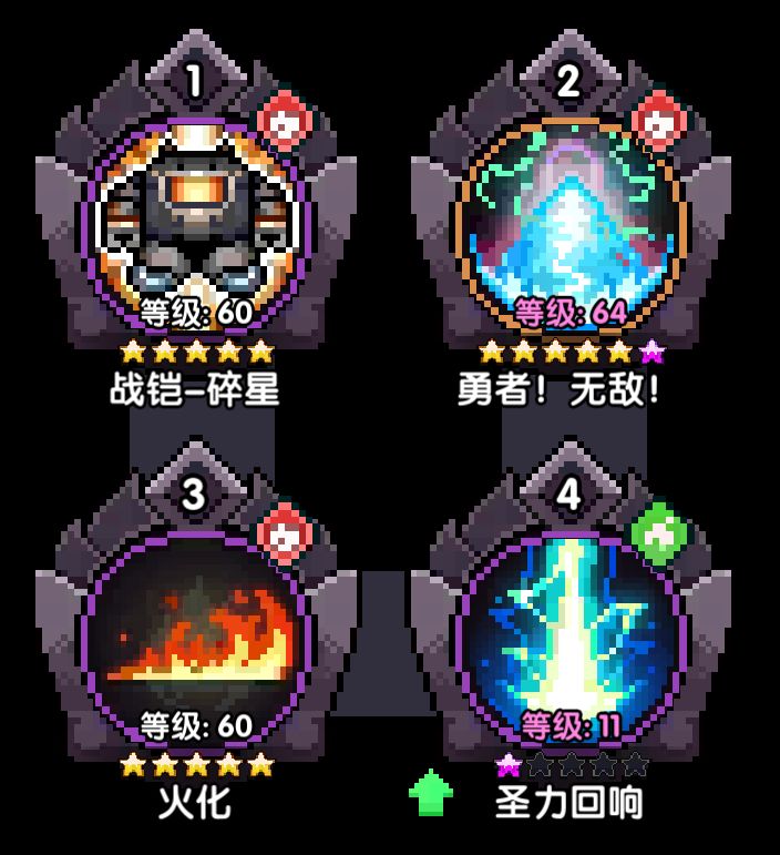 主攻:如果没有小老虎可以使用熊猫、火焰领主、贝利或天狗作为替代,小老虎>熊猫>火焰领主>贝利>天狗(天狗的易伤会被圣力回响触发,不建议使用)