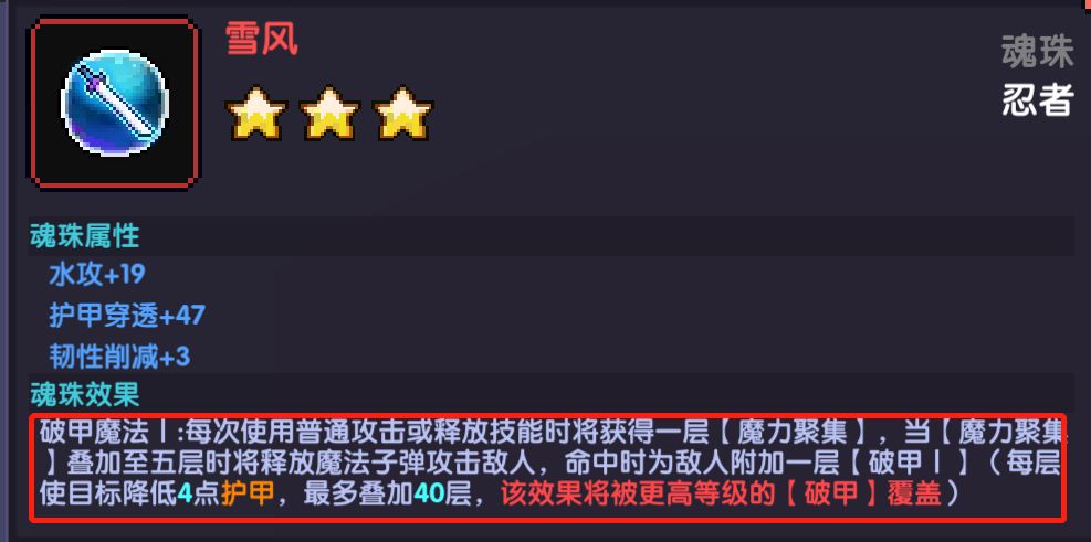 魂珠效果中有两个减穿透的技能
