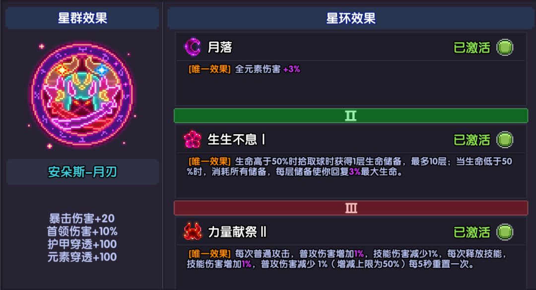 三环我们选择鬼神。一秒差不多就可以叠满50层鬼神,白嫖40%的技能伤害。由于斯托魂珠的机制需要我们普攻触发,所以大家千万别忘了普攻哦,就算普攻也能吃到40%多的技能伤害,非常不错的星环