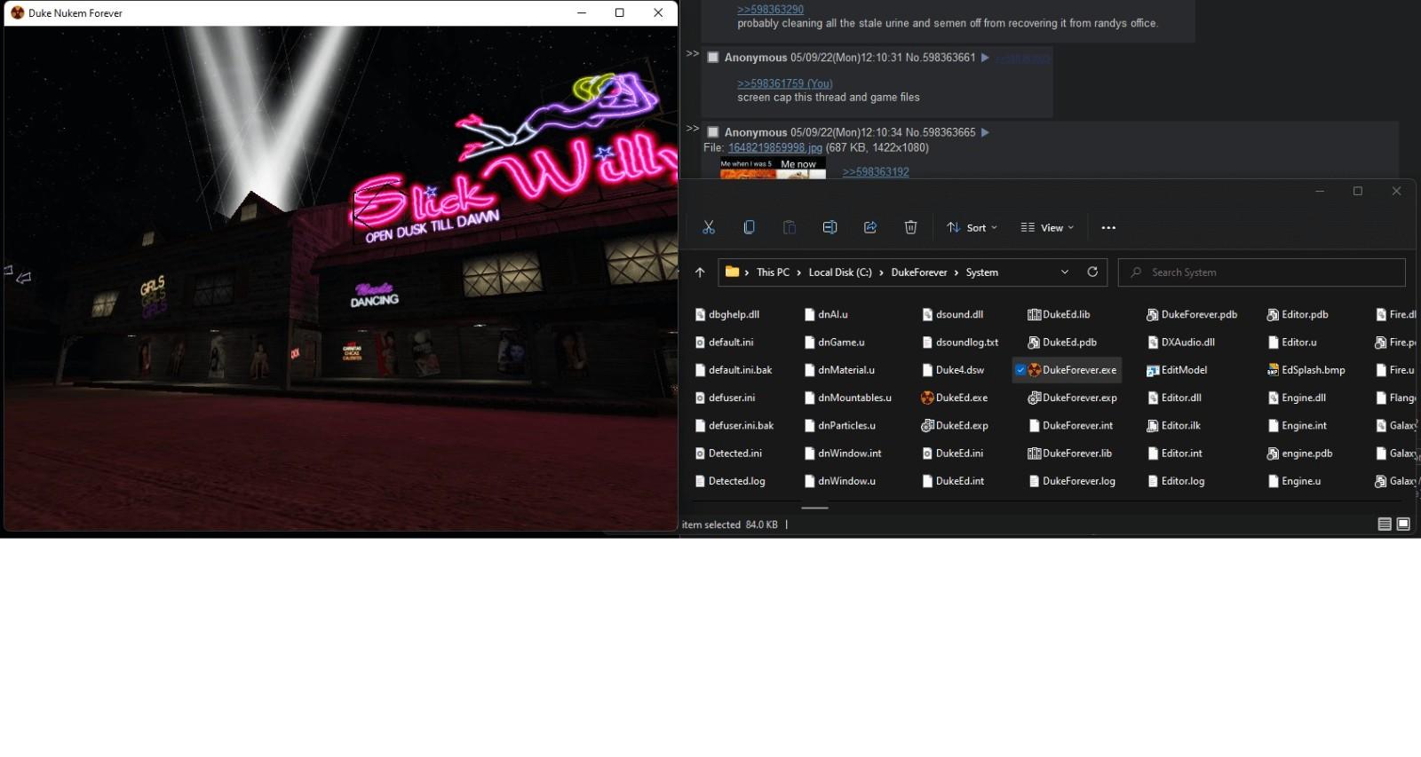 这一版本的实机内容和截图来自4Chan论坛,展示了游戏在2001年E3展上展示的内容。《永远的毁灭公爵》拥有最长的电子游戏开发周期,持续了14年之久。