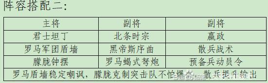 英雄解析:北条时宗,五星神将中最值得培养的强力英雄,可以把史诗徽章无脑给他,点出决胜天赋;嬴政,提供恐慌buff,治疗;君坦吸引敌方火力,给北条提供输出空间。