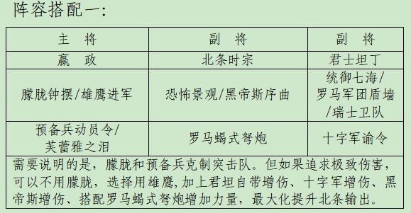 前次推荐的是较为稳定的阵容,现在为各位领主推荐一波极致伤害流: