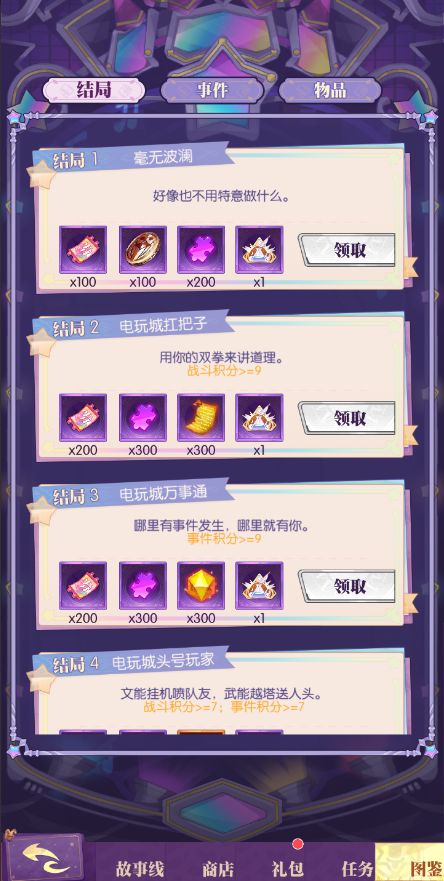 本活动拥有图鉴系统,根据触发的结局来解锁并获得奖励。