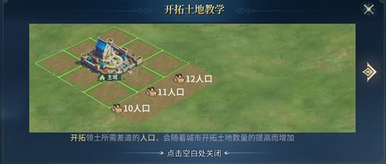 玩家开拓土地所需的人口,会随着城市开拓土地数量的提高而增加;在距离城市一定距离之外,需要差遣大量人口。