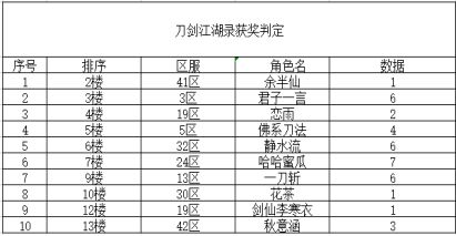 根据下方刀剑江湖录判定表,恭喜剑墨3区君子一言获得奖励。