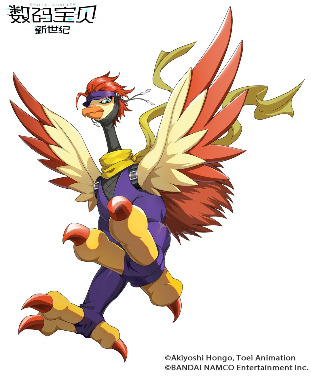 鸟型数码宝贝,拥有强劲的脚力,奔跑比在空中飞翔要快。奥义技是跳跃到上空,全身高速旋转,用其巨大的爪子粉碎敌人的“螺旋爪”,得意技是释放藏在翅膀内侧的钢铁之羽“苦无羽”。另外,还十分擅长像啄木鸟一样用尖锐鸟喙打击敌人的打击技“万千啄喙”。