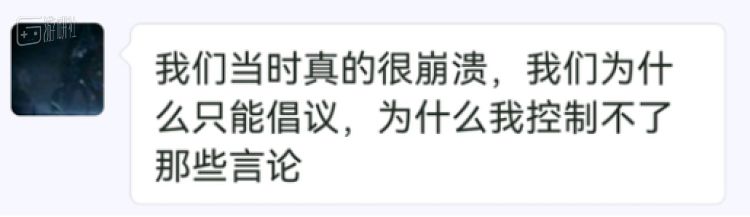 最后让这个由普通玩家搭建的沟通平台土崩瓦解的契机,正是他们敬仰的各位大佬。在战况最为混乱的时期,本该统率各位吧友的大佬们全程作壁上观保持沉默,而根据后来群主的自述,候选人之一的海乃风夏不仅没有支持这场由玩家自发组建的讨论平台,反倒直言不讳地道出“没有意义,想退出群聊”的风凉话,让本就迷茫且混乱的群聊彻底失去意义。