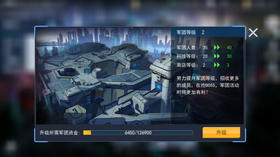 大厅不用多说了,用来升级军团的,等级越高军团可容纳人数越多,商店物品也越多;