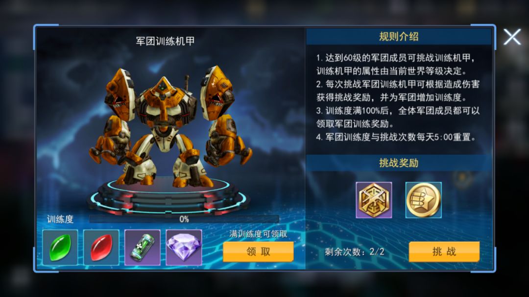 训练场就是军团人员训练的地方,当训练值满了全员可以领取金币贡献和钻石哦;