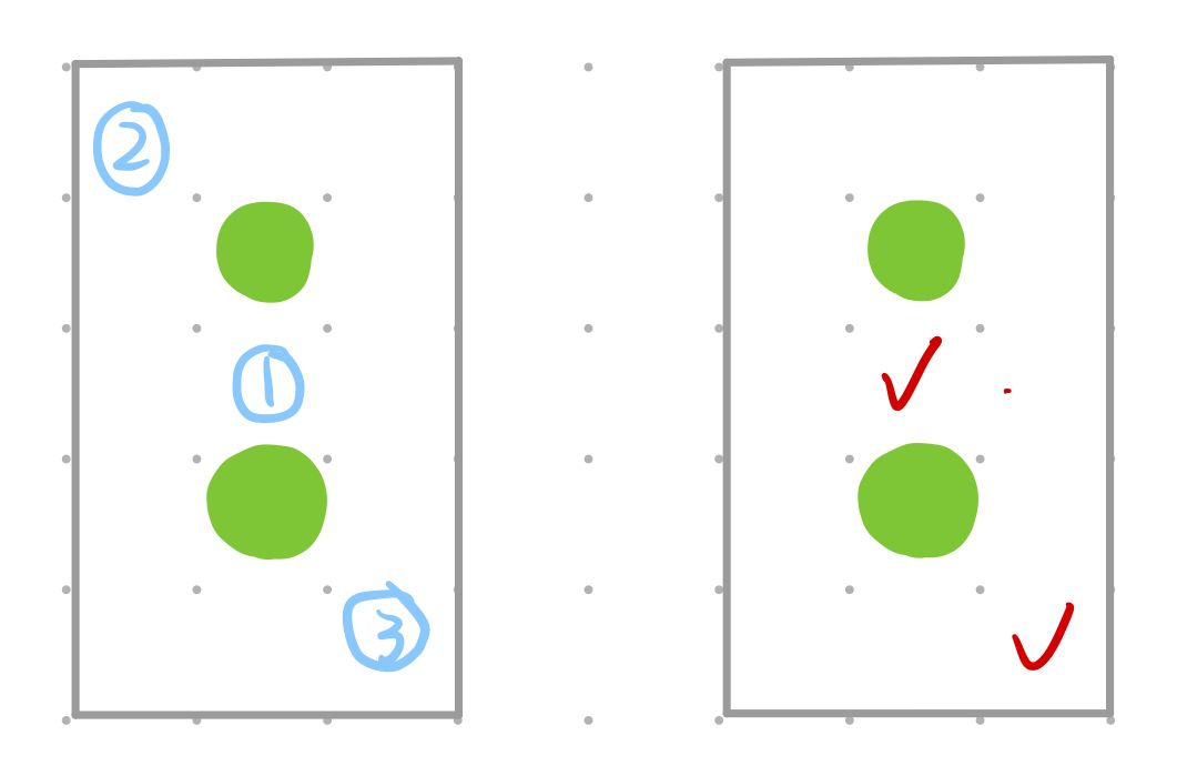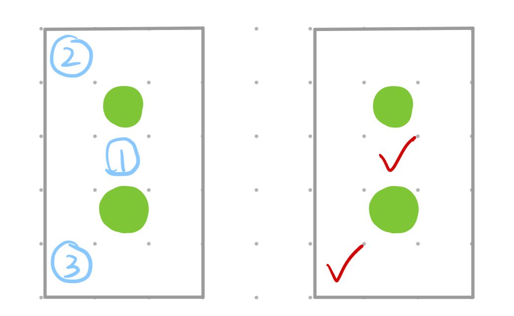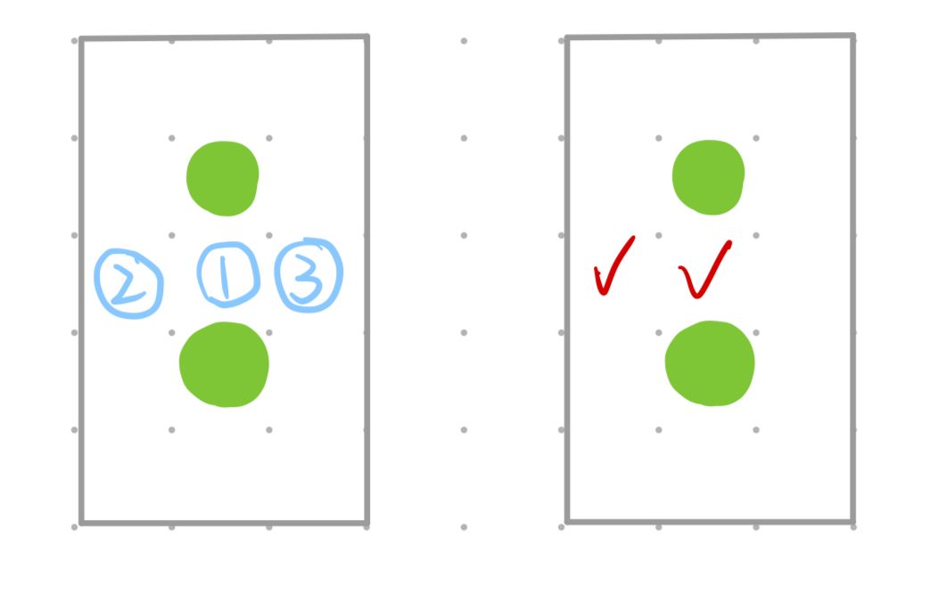 绿色代表灌木,蓝色表示空位,没有标明的位置我们都默认是挡住的。红色对勾表示生产位置