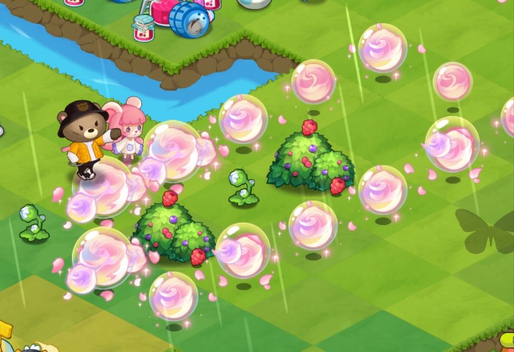 在摆烂的情况下小花蕾会满整个地面,这样在合成的时候很方便就能连起来,一次就能全部合成,但是留一格生产的情况下,就不可避免地有些灌木的位置把小花蕾隔开了,花蕾连不起来,不仅需要多次合成,而且还会出现更多的复制体,删起来很麻烦,那么我们怎么样才能让生产的花蕾连起来呢?