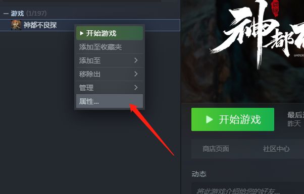 2. 在游戏名字上右键,点击属性