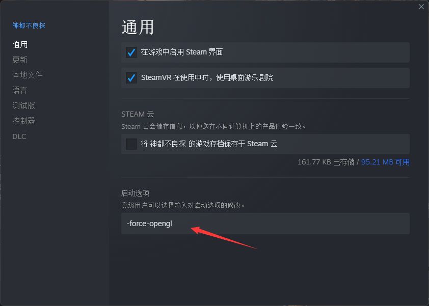3. 在弹出的属性窗口的启动选项中填入-force-opengl,如下图