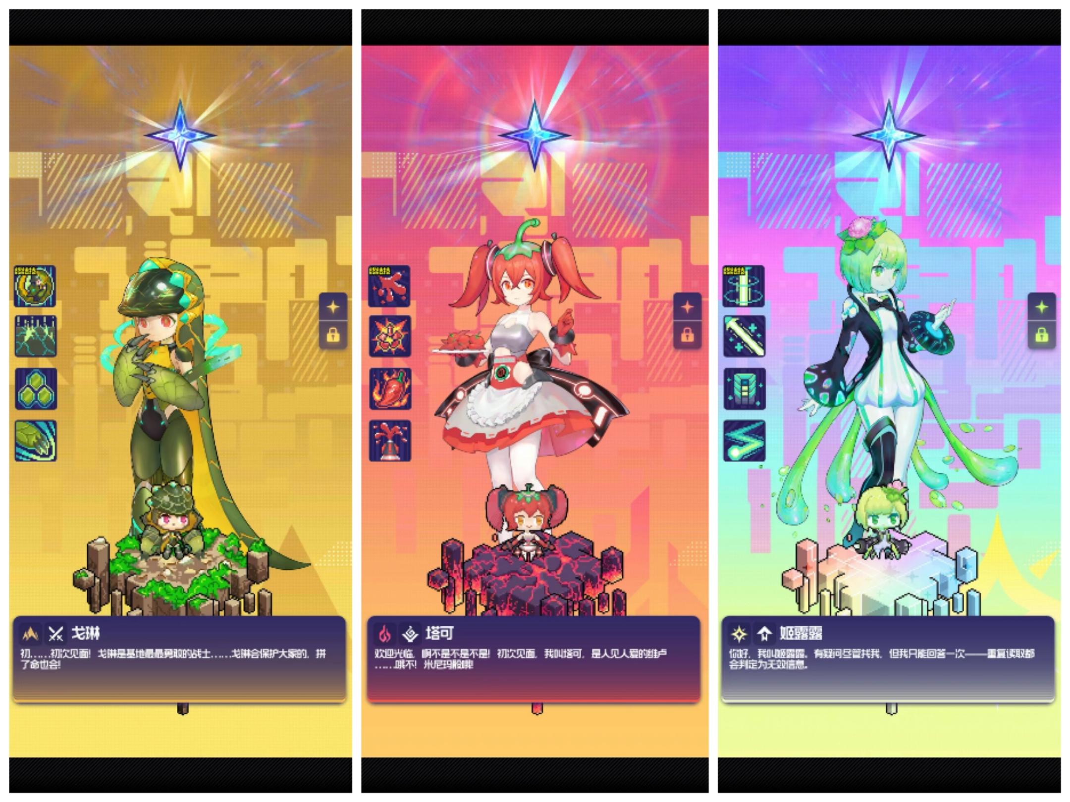 1、立绘水平参差不齐,开局的御三家,机器娘,辣椒娘和双料高级特工穿山甲(尿素齐全),第一眼看到他三个的立绘我都感觉是,一般,普通,甚至小丑。当然也有不少的立绘是很好看,以及很和谐的。可能现在丑的三星觉醒后就好看了,可以期待一下。