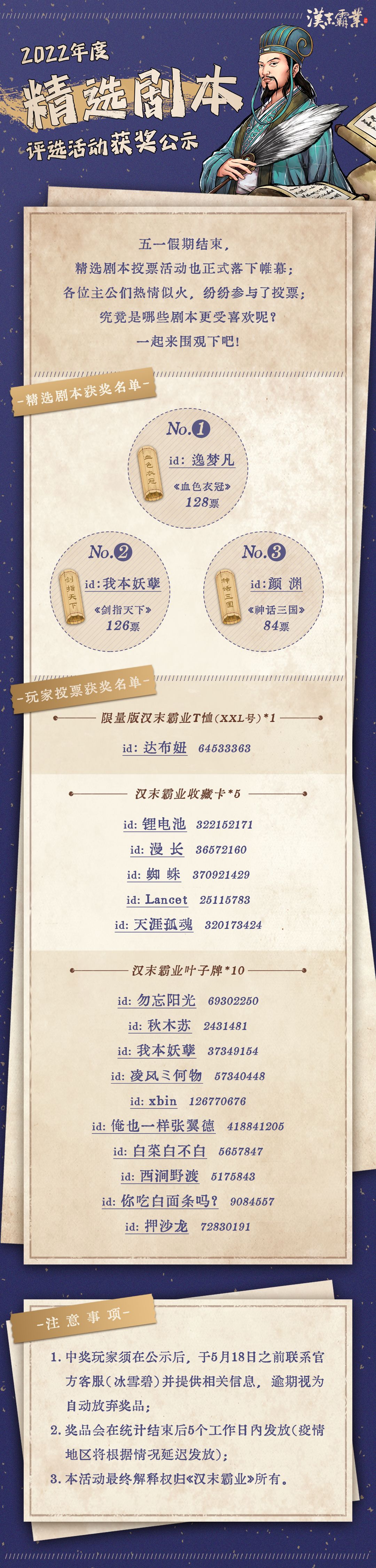 《汉末霸业》2022年度精选剧本评选获奖公示