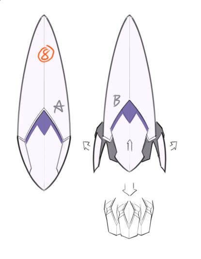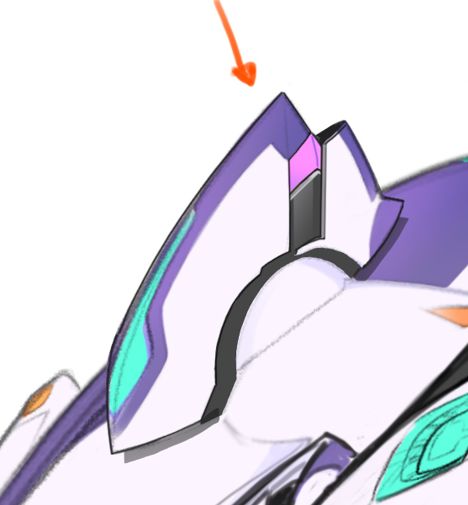 升级的重点放在了尾部推力装置。美术大大对于这一结构进行了多次尝试调整,希望能够在保留原有轮廓逻辑的前提下更加突出赛车镜的性格和破茧成蝶的主题。