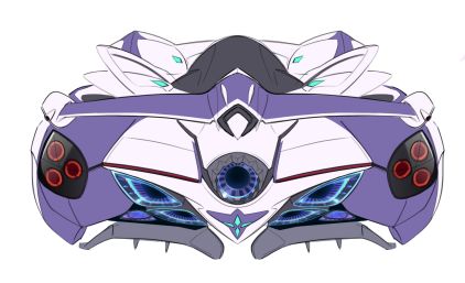 比较收敛的流线型跑车是第一形态,表现日常镜文静优雅的性格;相对夸张锐利的竞速形态就是第二形态,对应英姿飒爽的赛车镜人格。