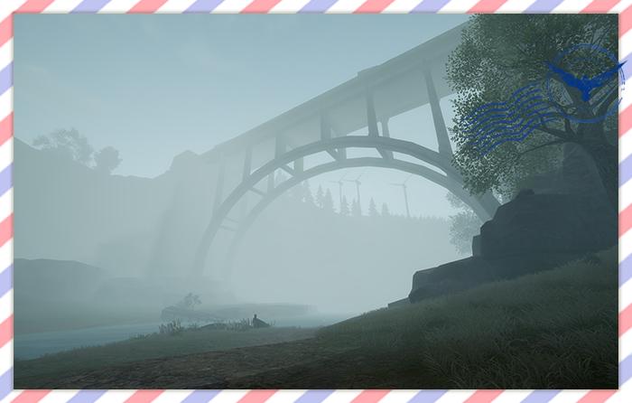 到达谷底,横跨在山谷间的大桥显露出真面目,宛如沉睡的巨兽守护着这里。