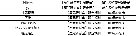 【魔咒研讨室】限定福利——100元京东卡(5份)