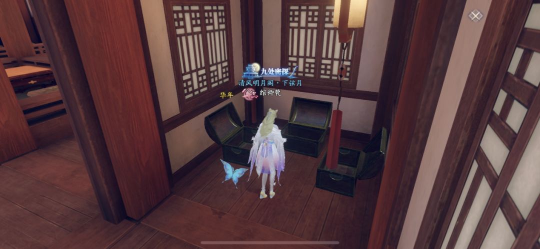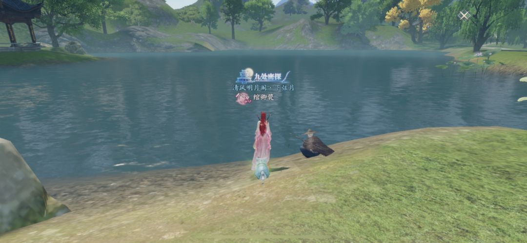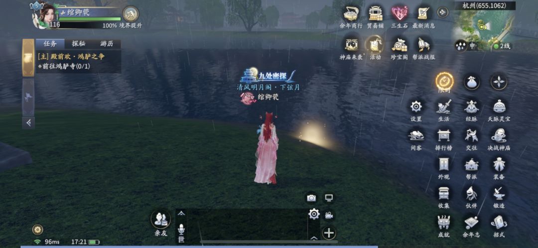 (2)随后在【大雨】天气的时候,前往对面的湖心小亭坐标【645,1060】,拾取发光的漂流瓶。