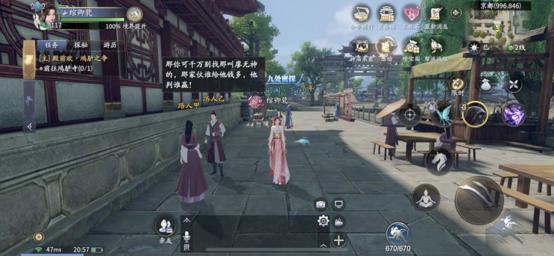 (1)等级达到【111级】,前往京都街巷坐标【996,846】,听到百姓议论纷纷,有位名叫廖无神的贪财判官,为钱作恶。