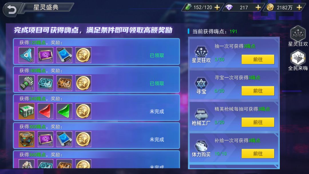 全民来嗨是完成对应的项目,获得对应的嗨点,嗨点达到对应的数值可以获得相应的奖励。